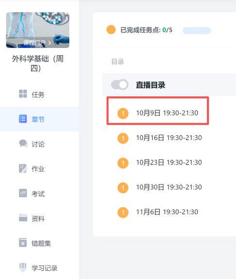 登录后,在“课程”模块即可看到学习课程。进入课程,点击章节里的直播链接,即可观看直播或回看。